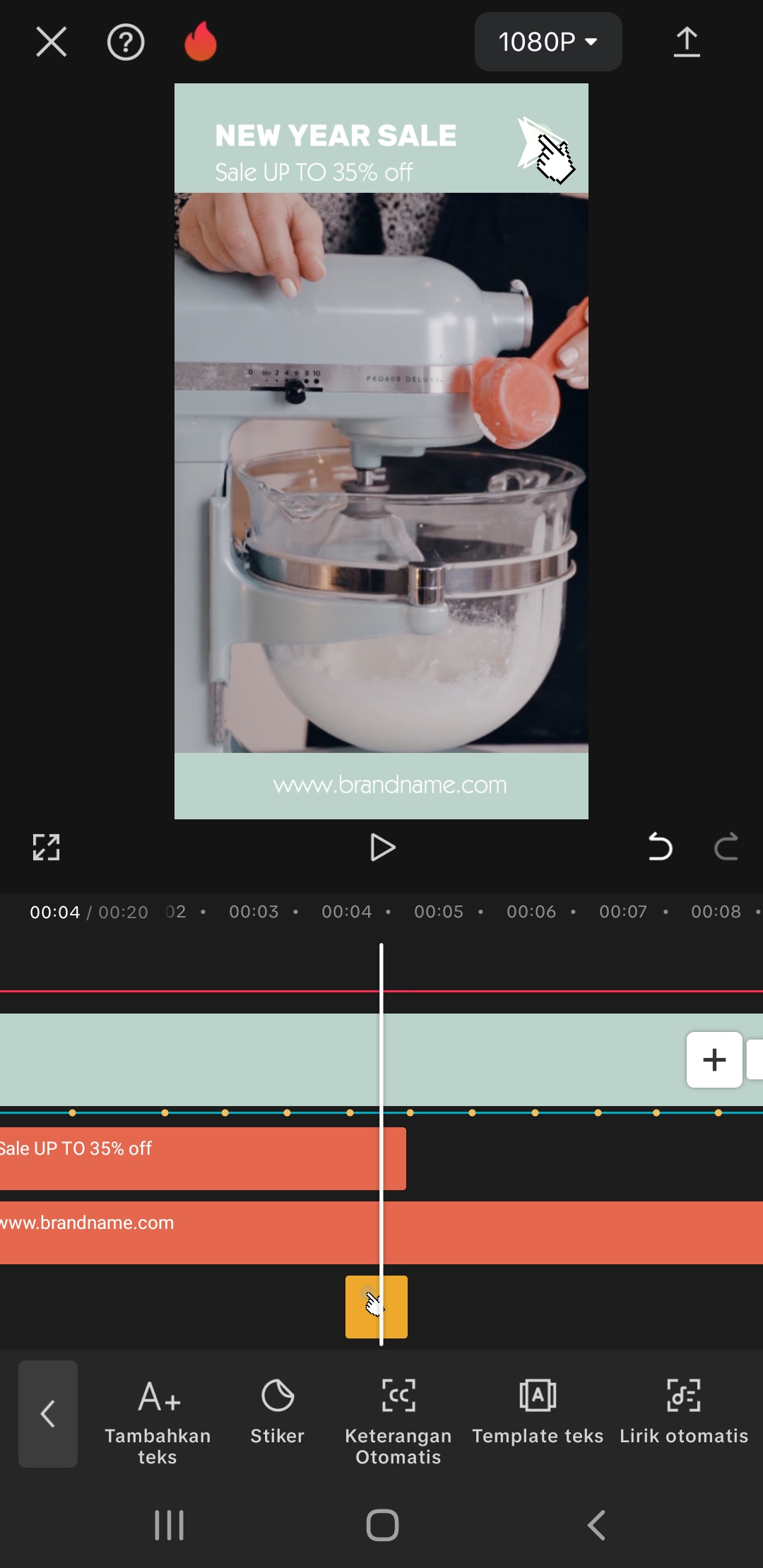 - Sticker tanngan di duplikat, letakkan di durasi 00.09